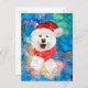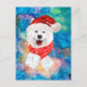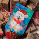 Julen Samoyed Breed Hund har en vattenfärg av en Samoyed med en röd julklapp, en röd julklapp och en galaxisk vattenfärg.