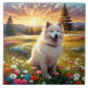 Samoyed hund som sitter i en äng med blommor. Pussel, planerare, anteckningsböcker med denna design i mina butiker.. Massor av husdjur och landskapsdesign i mina butiker. Lägg till denna design på andra produkter. Lägg till text.