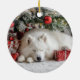 Denna berömvärda julprydnad, med en Samoyed som ljuger under ett Julgran, är en underbar gåva till alla Samoyed älskare.