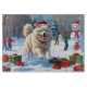 En glatt Samoyed springa som leker genom snövinteckan och bär en festlig röd julhatt. Denna fina utformning belyser rasens flytande vita jacka, leende uttryck och vänskapliga personlighet samtidigt som den fångar julhelgens värme och magi. En hjärtslitande vintertid fullt av festlig cheer.