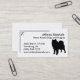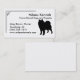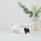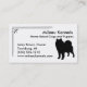 Ett enkelt svart- och vitt affärskort med en silhuett av Samoyed med ett geometriskt mönster i hörnet.