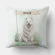 Add cozy charm to your home with this Samoyed throw pillow featuring a watercolor design and customizable name flag. Ideal for breed lovers.