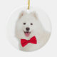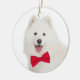 Denna härliga julprydnad presenterar en Samoyed med en festlig röd bowtie!