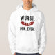 This hoodie is much better than I expected. top quality, true sizing, and really comfy. I was a bit worried that the lettering would be too dark on the navy blue hoodie, but once it arrived it was perfect. Easy to see the words, and the quality of the wording is fabulous. I will be buying more hoodies in future
