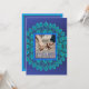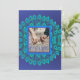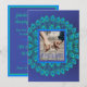 Ljus blå och teal påfågelsfjädrar Inbjudan mall. Denna vackra påfågeldesign kan anpassas med ditt eget foto på framsidan och med detaljerna om firandet på baksidan.