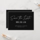 Bjud in gästerna till din bröllop med denna samtida save the date-inbjudan, med ett modernt skript-teckensnitt i kombination med ett enkelt elegant teckensnitt på svart bakgrund. Denna save the date-inbjudan är perfekt för alla säsonger.