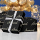 Sehr schönes edles personalisiertes Geschenkpapier im whitegold Lettering Look auf schwarz für Samuel.