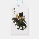 Samurai Cat with Beer & T-Rex | Retro Japanese Art Presentetikett