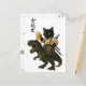 Samurai Cat with Beer & T-Rex | Retro Japanese Art Vykort