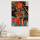 Japanska Samurai bekämpar monstret Ansikte Mask Takiguchi U-Toneri Watanabe i Tsuna på väg att stänga av arm i Rashomon. Klassisk japansk konst från Utagawa Kuniyoshi i mitten av 1800-talet.