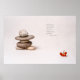 Stängning av en hög av småstarna, stenar av grått färg i form av en människa och en liten samling torra askbär. Texturerad fotografi. Följande haiku-text från Matsuo Basho läggs till i vissa bildkopior - Inga blommar och ingen måne, och han dricker hela ensamen! (Matsuo Basho) Skumlig som fotografi för att användas som en positiv gåva eller dekoration.