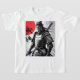 Förbered krigarandan med den här slående svartvita samuraiska teckningen, mot det fet röda stigning sol. En perfekt biet för fläkt av den japanska kulturen, martialkonsten och traditionell krigarestetik.