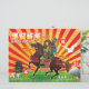 En slående nyårshälsning med Minamoto no Yoshitsune till häst under den uppgående solen, som symboliserar mod och förnyelse. Inspirerad av klassisk japansk estetik firar den år eld-hästen med livlig energi. Du kan anpassa meddelandet på ditt eget språk — till exempel ”Bonne Année 2026” på franska eller ”Frohes Neues Jahr 2026” på tyska.