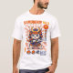 En vild men bedårande samurajkatt som hanterar ett svärd i djärv japanskinspirerad konst. Med körsbärsblommor och sushi-element kombinerar denna lekfulla krigardesign kawaii-charm med stridsberedd attityd.