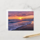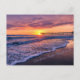Pacific Ocean Beach San Diego Pier Sunset Souvenir Postcard: sol ligger i slutet av Crystal pier, i Pacific Beach, San Diego, Kalifornien, USA, med en vacker skumvåg i förgrunden, och den orange lila Mbre himlar reflekterar över blöten och oceanen vatten. Fotografiet är perfekt för både solnedgång älskare, strand älskare och pier älskare. Ett underbart vykort för Pacific Beach, San Diego, Kalifornien, USA.