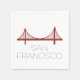 Enkel och modern grafik "San Francisco" i ren, skarp text med röd silhuett av Golden Grind Bridge