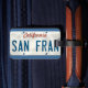 Underbar artikel med en San Francisco California-registreringsskylt.