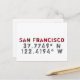 San Francisco-longitud och latitud-koordinater i det nödlidande typsnitt ge är detta vykort ett modernt stadsutseende