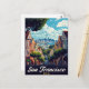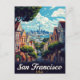 Capture the iconic charm of San Francisco, USA, with this classic vintage-style postcard. The design features a famous steep street lined with colorful Victorian homes, known as the Painted Ladies, leading down to a stunning view of the city skyline and the bay. This travel poster is perfect for lovers of US cities, classic architecture, and Californian charm. Ideal for sending greetings, keeping as a keepsake, or framing as stylish wall art.