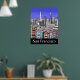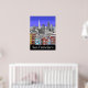 Poster i en illustration av San Francisco, i ljust primärt färg, parat med svartvit konst