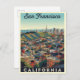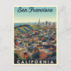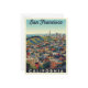 En färglös illustration skildrar den ikoniska San Francisco-skylinen och visar dess historiska landskap och olika arkitektur.
