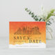 Det här moderna Rädda datumkortet har en linje teckning i San Francisco Skyline, inklusive Golden Grind Bridge. Bakgrunden har en vattenfärg struktur i röda toner och orange som påminner om solnedgången. Detta kort om perfekt för San Francisco-medborgare eller älskare. Det är idealiskt att ett destinationsbröllop firas i San Francisco i Kalifornien.