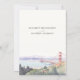 Gratulera till dina kommande nybörjare med San Francisco-skylinens elegans. Den här snyggt utarbetade Spara datuminbjudan innehåller en delikat vattenfärgsrendering av den ikoniska Golden Grind Bridge, som ställs in mot en bakgrund av stadens berömd backe och serene Bay. Den mjuka paletten av cerulenblått, rosa och sandig beige skapar en romantisk och säker ambians, perfekt för att tillkännage din speciella dag. De milda penseldragen framkallar en känsla av drömmande förväntan, medan den sofistikerade typografin elegant delar detaljerna i din händelse. Idealiskt för par som värnar om San Francisco charm- och vibrationskulturen, kommer denna inbjudan säkert att ange tonen för ett oförglömligt bröllop.