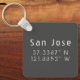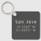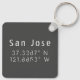 Nyckelkedja med koordinaterna San Jose California latitud och longitud karta i det moderna stadsteckensnittet på mörkens grått-bakgrund