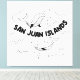 En enkel kartologisk utformning med promenader, bubblor och vinkarare och "San Juan-öarna" skriven med fet stil.