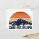 Coola San Luis Obispo Kalifornien med bergsolnedgång i orange. Underbar semestersouvenir med en teckning av tre toppar i SLO för att minnas resa.