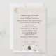 Sagolikt strandtema bröllopsinbjudan gjort i en ljusbeige färg, med grafik av en sandborgs kontur omgiven av snigelskal. Ett streckat band, högst upp är dekorerat med ett skal, på vänster sida. Anpassa den svarta texten för din speciella dag.