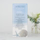 De här programmen är perfekter för alla par som planerar ett elegant-badbröllop. Konstruktionen har en grå sanddollar och en ljusblå stjärnfisk med en avgjord blå strandbakgrund. Utformningen avslutas av med en känslig sand färg gräns. Den enkla och nya utformningen kan vara personlig till kostym för ditt speciella evenemang och kommer att vara perfektens serviceordning för alla typer av evenemang på stranden, inklusive: möhippor, förlovningar, möhippor, födelsedagsfester och mycket, mycket mer.
