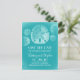Gamla vintage strand bröllop spara datum vykort med turkosblå sanddollar