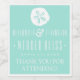 Perfekt till ett destinationsbröllop. Den fina dollarbilden med briden och groomar namn personlig på stranden var temat bröllop vin flaska. Har du ett strandtema till bröllop? Den här etiketten för vin flaska är personlig med bröllop-datumet "Bröllade bliss" och "Tack för deltagande". Trendig Sea Skum eller Sea Glass Blue färg med vit text färger. Anpassa bakgrunden till färg och klicka på Anpassa. Vin är en underbar tack till er gäst i bröllop och brudens sida till ge. För att se mer vackra mönster, gå till "The Hungarican Princess - A Boutique" på zazzle.com/hungaricanprincess. Grattisar.