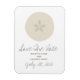 En bröllop spara datum-magnet med en illustration av en sanddollar. Anpassa texten. Leta efter matchande bröllopsinbjudningar och mer på Jill's Paperie.
