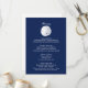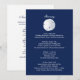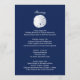 Blå strandbröllopsinbjudan informationskort med sand dollar och vit text på ena sidan och motsatta färger på den andra. Program på ena sidan och boende på den andra sidan eller ändra till riktningar eller annan information efter behov.