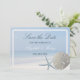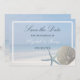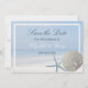 De här sparar datumkorten är perfekt för alla par som planerar ett elegant-badbröllop. Konstruktionen har en grå sanddollar och en ljusblå stjärnfisk med en avgjord blå strandbakgrund. Utformningen avslutas av med en känslig sand färg gräns. Den enkla och nya utformningen kan vara personligen till kostym för ditt speciella evenemang och kommer att vara perfektens meddelande för alla strandteman party, inklusive: möhippor, förlovningar, möhippor, födelsedagsfester och mycket mer.