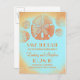 Vackert vintage-strandbröllop räddar datumkort med sanddollar i orange och blåhavsskum färg ton.