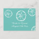 Sand-dollar snäcka teal och vit strandbröllop tilläggskort