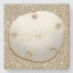 En mjuk vit och gräddvit sanddollar sitta på mousserande strand vid guld glitter. Ett söt hav dem.