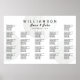 Stort sjökort poster för en stor bröllopsmottagning. Vita sanddollar är bakgrunden till svart text. Gift efternamn överst med namn under Bride och Groom, tillsammans med datum. Använda varje avsnitt om du vill lägga till gäster namn alfabetiskt eller efter bordsnummer när du väljer. Ta bort avsnitt som inte behövs.