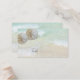 Två sanddollarer bröllopsbord nummer kort. Använd som platskort eller eskortkort genom att handskriva gästens namn. Texten "Tabellnummer" tillhandahålls i mörkgrå skrift, eller så kan den raderas. Bakgrunden är en strandbild med blågrönt vatten som kommer upp på en sandig strand. Två naturliga sanddollarer pryder det övre hörnet och baksidan av korten har samma strandbild.