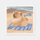 En snygg design för sommartid och bära. En liten chow får en solbränna på stranden med ett glatt uttryck på hans ansikte.