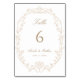 Classic ornate floral frame wedding table number. For more advanced customization of this design, please click the BLUE DESIGN TOOL BUTTON above! Matching items are also available.