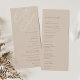 Ett vackert typografiskt baserat bröllopsprogram-kort som innehåller initialer i överdimensionerade skript som skrivs överst, i tonlägen för tonskuggor för att ge en vattenstämpeleffekt. Anpassa med din ceremoniinformation nedan och anpassa baksidan med din bröllopsfest. Vår Sand-färgbana är en elegant blandning av jordfärgade tonskuggor, med blek kräm och terracotta lera på en mjuk sandbeige bakgrund.