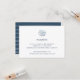 Enkel och elegant kustinspirerad vigselmottagningsbilaga med era mottagningsdetaljer (tid, lokal och adress) i klassisk marinblå, överst prydd med en pastell blå akvarell sanddollar illustration.