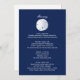 Blå strandbröllopsinbjudan informationskort med sanddollar och vit text på ena sidan och motsatta färger på den andra. Itinerary på ena sidan och boende på den andra sidan eller ändra till riktningar eller annan information efter behov.