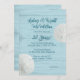 Bröllopsjubileumsinbjudan med strandtema med sanddollar och blå träkonstruktion. Mörkblågrön text är enkel att anpassa över en ljusblå trästrukturbakgrund. Två naturliga sanddollar pryder också papprets kanter. Välj att uppgradera med ett av de specialpapper som erbjuds.