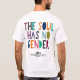 Icke-binär mode T-Shirt med back print Den här själen har ingen Papper gender Light från pride-samling med X-Gender Studio. Kind- och originalfärggrafik T-Shirts för avslappnad av icke-binära tonåringar och utdrag från Pride Parad. Du kan flytta den här designen till vilken skjorta som helst, hova eller tröja från den aktuella Zazzle-katalogen. Genom att välja kläder i vår butik får du inte bara pride av mångfald i coolan, du uttrycker och visar ditt pride fritt genom kläderna och stöder även företag som inte är binära klädmärken och företag som ägs av HBT-personer. Lägg din fråga med oss!