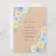 Denna design har en varm sandfärgad bakgrund prydd med mjuka akvarellblommor. Ömtåliga blekblå och ljust gula rosor är nästlade bland silverfärgade eukalyptusblad för en lugn, naturlig estetik. Paletten av dammig azurblå, smörgul och jordnära beige skapar en romantisk atmosfär. Frodiga botaniska kluster accentuerar layouten och ger en graciös och polerad look.